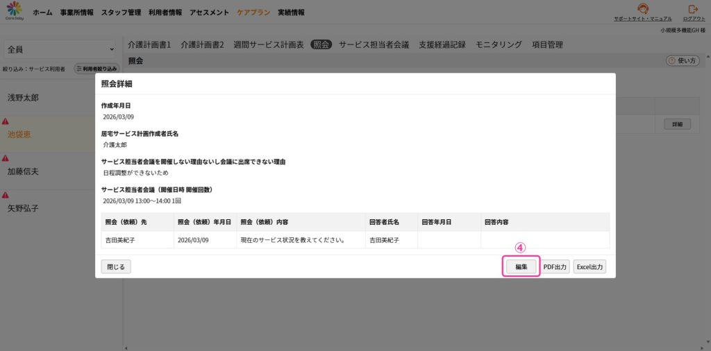 ③編集する照会の[詳細]をクリックします。