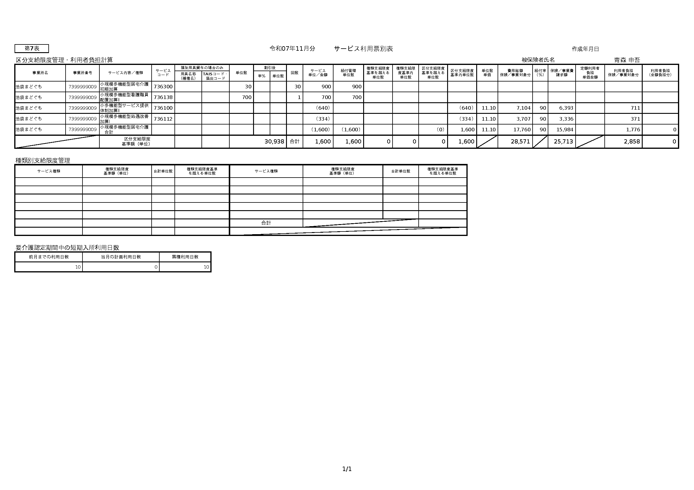 ⑥サービス利用票別表が別画面で表示されます。必要に応じて、保存、印刷してください。