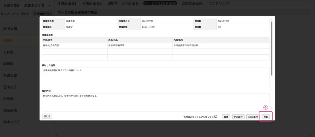 ③複製するサービス担当者会議の[詳細]をクリックします。